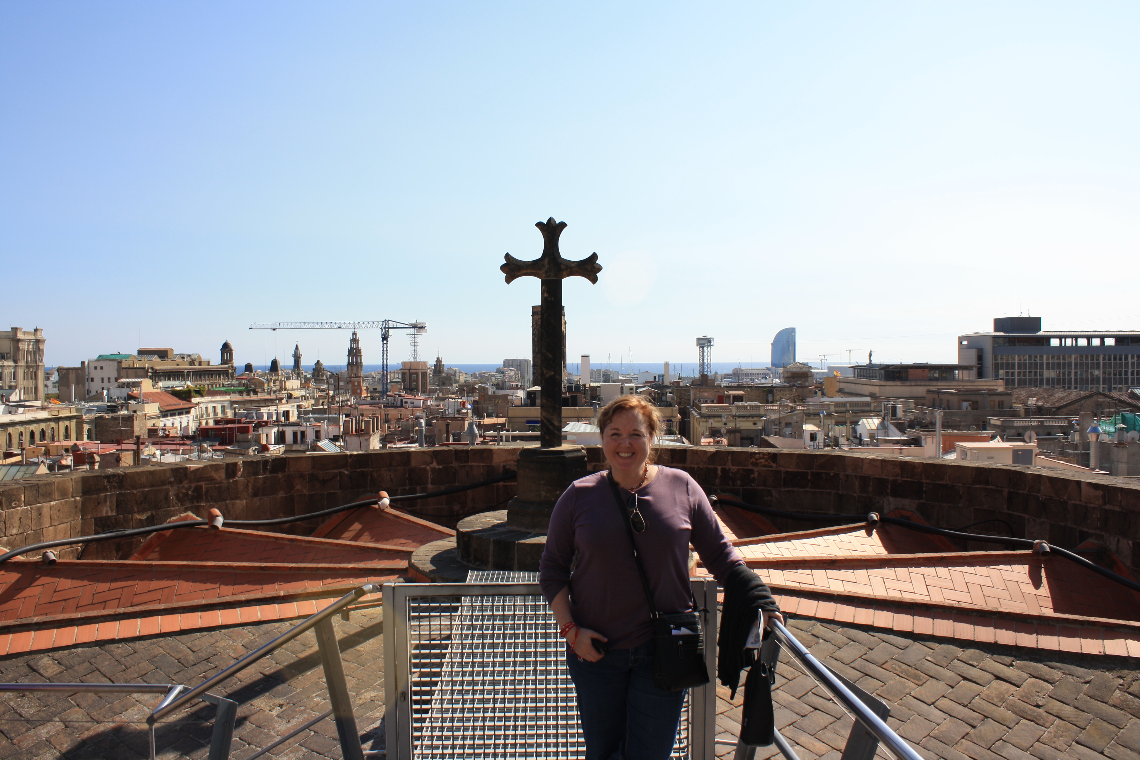 id a quick tour of some of Barcelona’s best sights & heights, including the Park Guell which offered spectacular views of the city. Despite my fear of heights, we took an elevator to the top of the Barcelona Cathedral & walked around among the scaffolding (repairs are in progress) for more great views.